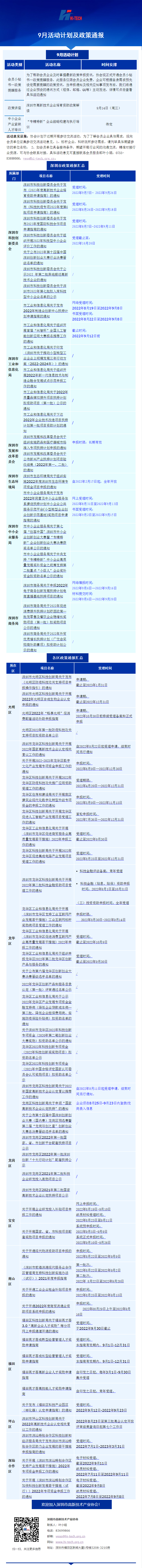 2022年9月活动计划及政策通报